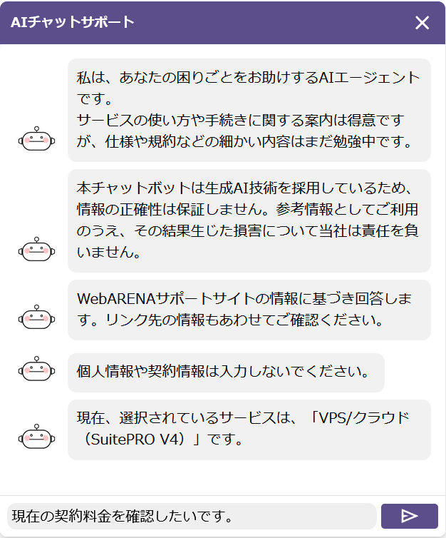 ※WebARENAでは、2025年9月下旬より生成AI技術を用いたチャットボットを新たに提供開始しました。