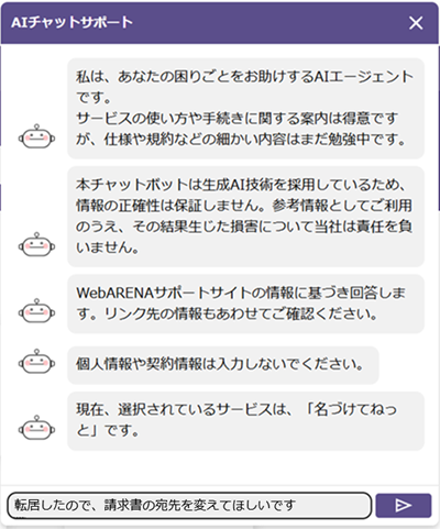 ※WebARENAでは、2025年9月下旬より生成AI技術を用いたチャットボットを新たに提供開始しました。